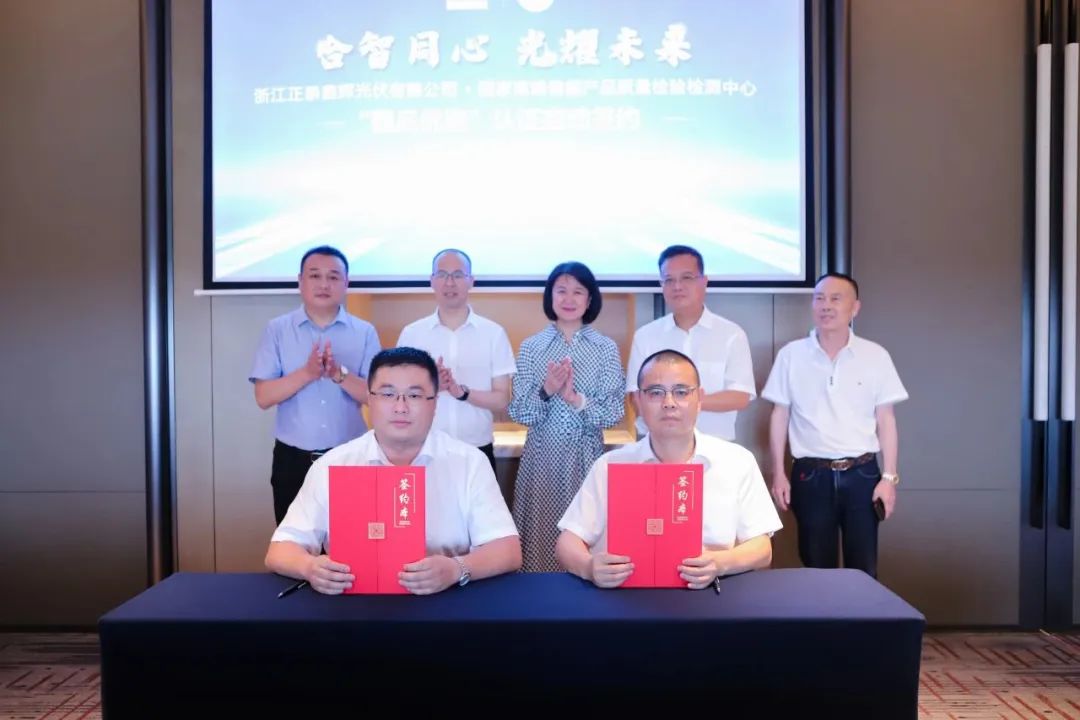 8月3日,广发体育登录入口控股子公司——浙江正泰鑫辉光伏有限公司(以下简称“正泰鑫辉”)与无锡市检验检测认证研究院(以下简称“无锡检研院”)在乐清举行战略合作签约仪式。双方将在产品标准研发与制订、测试仪器设备研发、正泰鑫辉产品高端品质认证及零碳工厂、绿色工厂评价、博士后工作站共建等NQI国家质量基础设施和科研领域进行全方位互利合作。