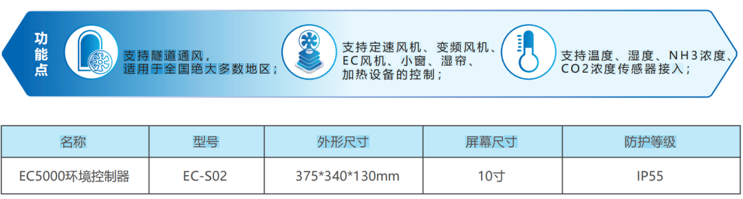 环境控制器可全自动执行环控策略,监测当前舍内的温湿度、有害气体浓度等数据,并结合猪只最适宜的温湿度情况,联动控制风机、湿帘、通风窗、供暖等附属设备,让畜禽舍内部的气候条件,不受外部季节环境影响,始终保持在最适宜的范围内。