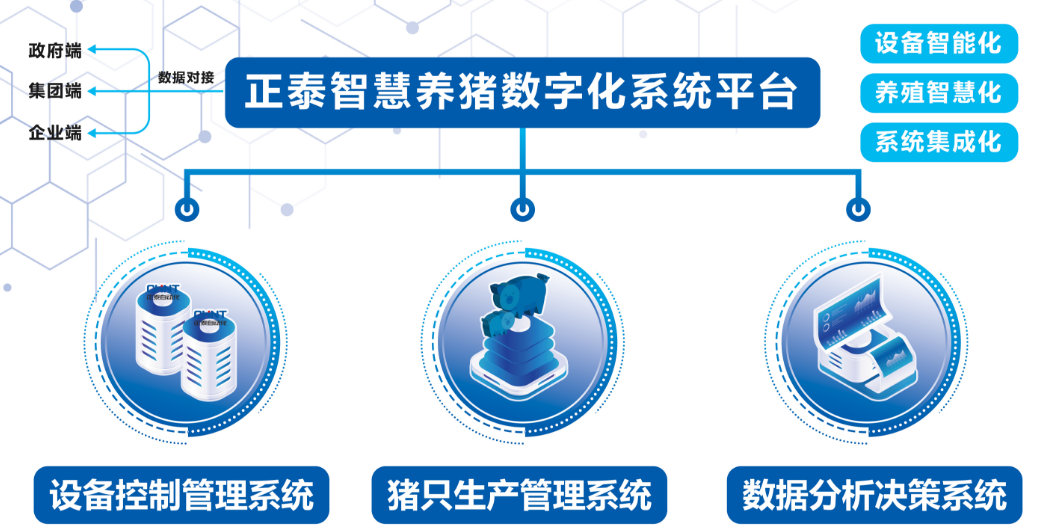 “正泰智慧养猪数字化平台”,包含三大核心系统,可以有效提升养殖效益,降低运维成本。